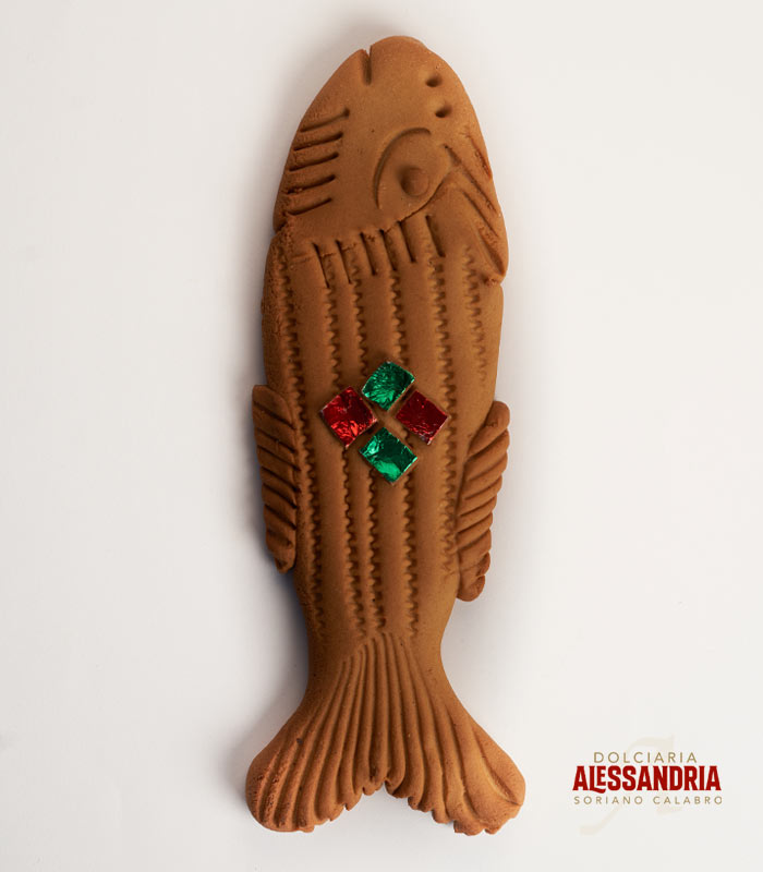 Il Mostacciolo artistico a forma di pesce di Soriano Calabro è il dolce simbolo della tradizione dolciaria calabrese, con quasi cinquecento anni di storia. Da un’antica ricetta dei monaci domenicani, viene ancora oggi preparato artigianalmente con la ricetta originale: solo miele e farina. La consistenza compatta e il profumo intenso lo rendono unico, portando con sé il gusto autentico della Calabria. Un vero gioiello dolciario, ideale da gustare o da regalare a chi ama la Calabria.